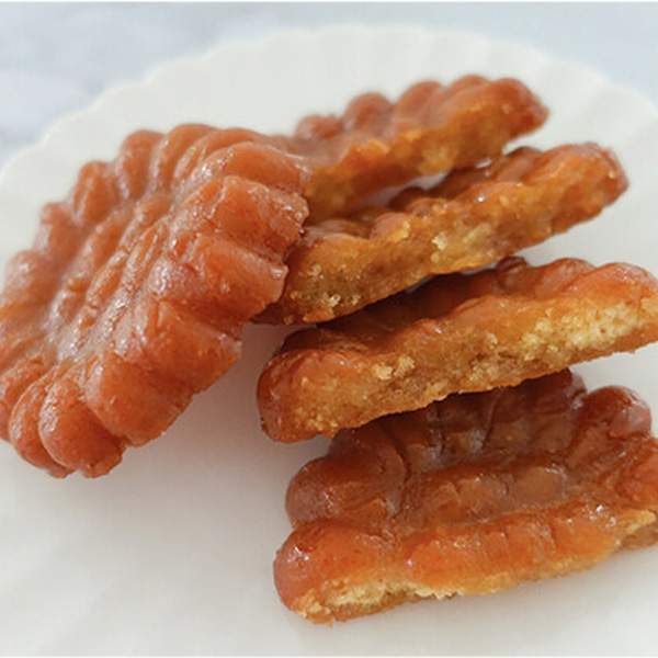 Zutaten: 46,1 % Stärkesirup, 35 % Weizenmehl (Weizen und Hauptsäuregehalt, USA), 13,4 % Sojaöl (Ausland: USA, Paraguay, Brasilien usw.), 5 % Klebreispulver (Inland), 0,3 % Natriumbicarbonat, Vanille | Enthält 0,1 % mageres Getreide, 0,1 % Zimt, Weizen und Sojabohnen